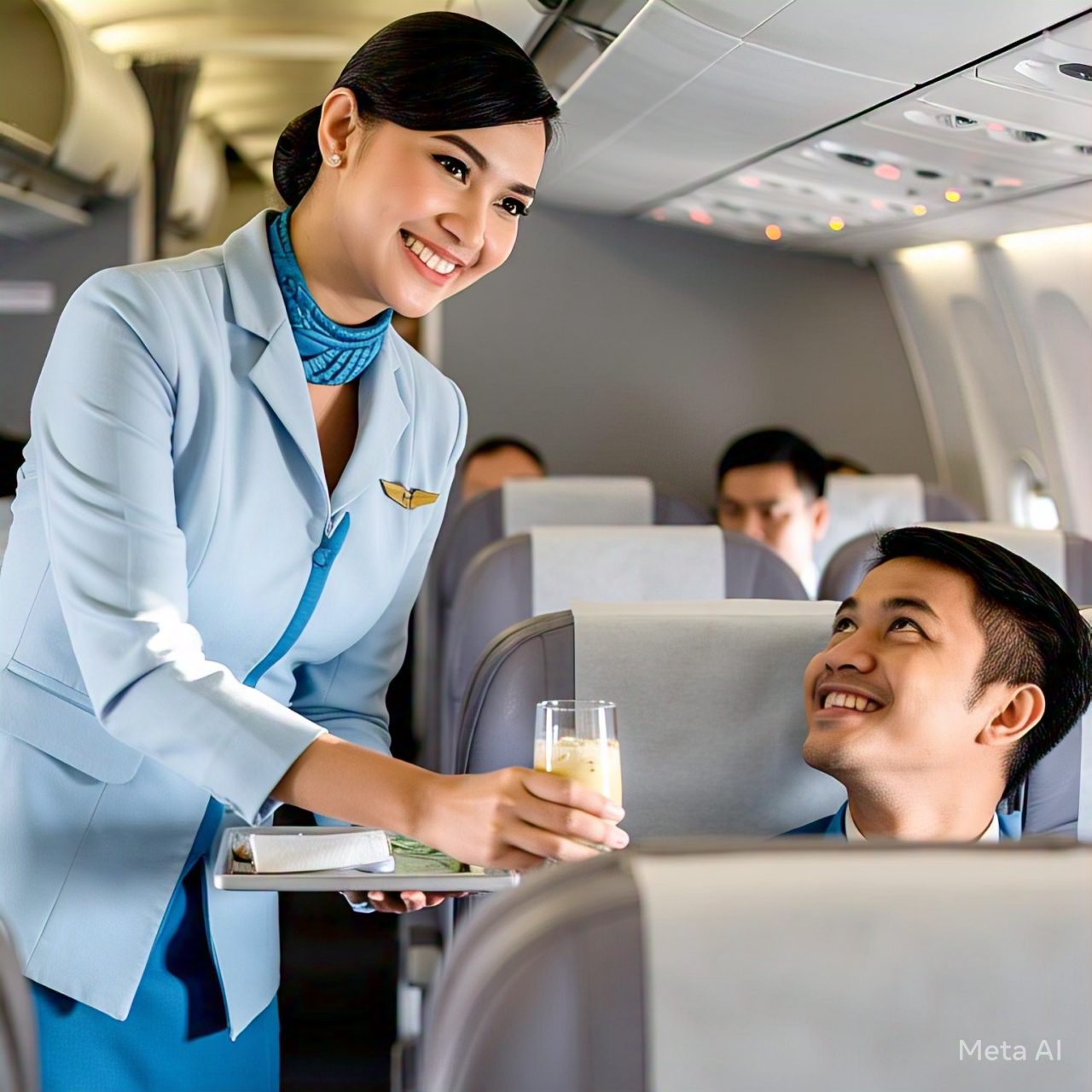 Mulai dari menyambut penumpang, membantu mereka menyimpan barang, menyajikan makanan, sampai menjawab pertanyaan. Semua dilakukan dengan senyum ramah dan sikap profesional.